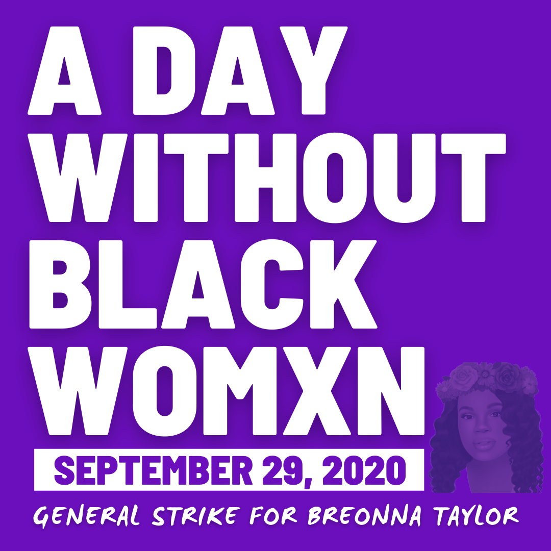 On Tuesday, September 29, 2020 Black Womxn and their accomplices will display their collective power. Marking ‘A Day Without Black womxn, we will disrupt business as usual, and center Black womxn as essential to our economy and our equality.